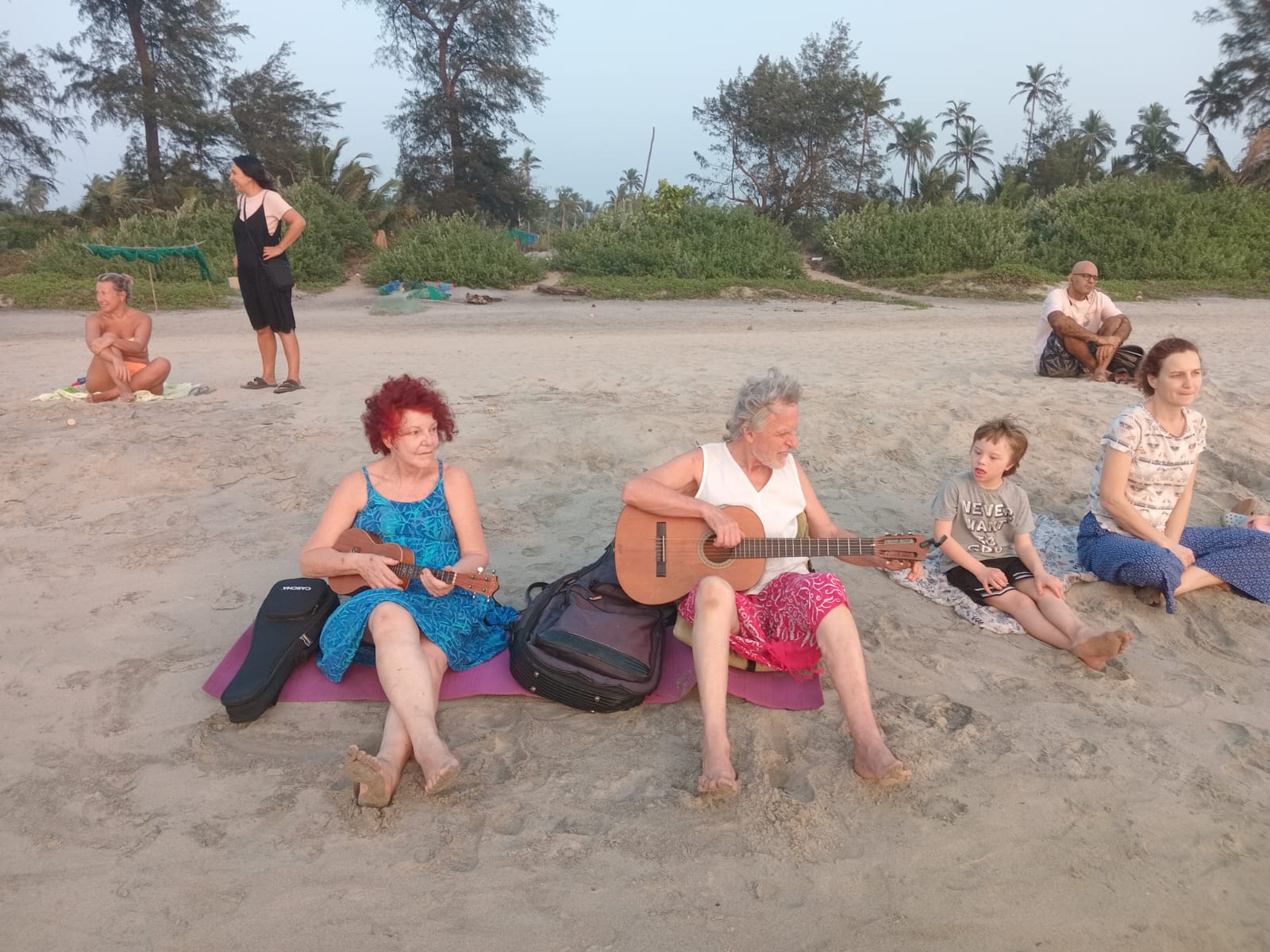 - Tanzmeditationen und gemeinsames Singen von Bhajans und Mantras jeden Abend am Meer